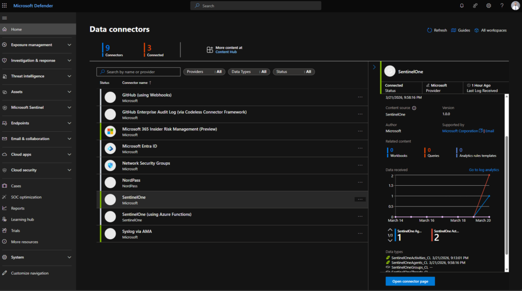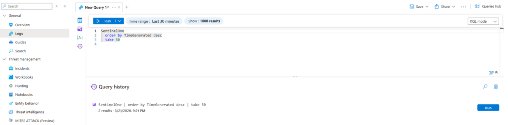 With logs flowing from both sources, Microsoft Sentinel provides a unified view for querying, correlation, and alerting.